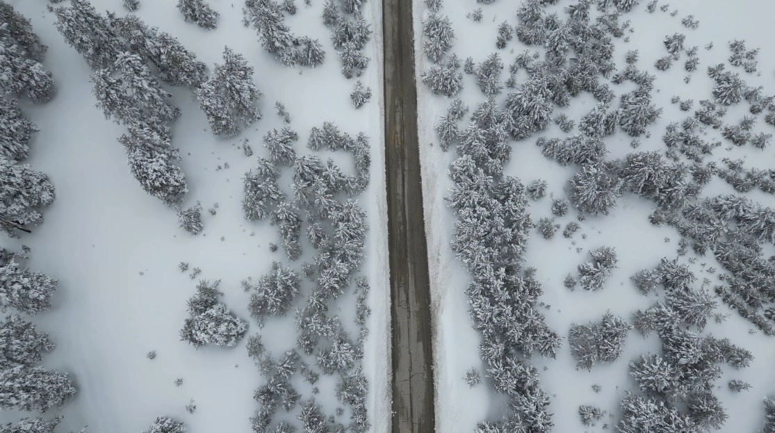 Etrafı sarıçam ormanlarıyla çevrili olan kara yolu, beyaz kar örtüsüyle birleşince doğa tutkunlarını etkileyen bir tablo ortaya çıkardı. Dron ile görüntülenen kara yolu, doğanın sadeliği ve ihtişamını aynı karede buluşturdu. Sarıçam ağaçlarının koyu yeşil tonları ile karın bembeyaz dokusu arasındaki kontrast, görsel bir şölen sundu. Bahar ayına rağmen bölgede etkisini sürdüren kar yağışı, Sarıkamış’ın kendine has iklimini bir kez daha gözler önüne serdi.