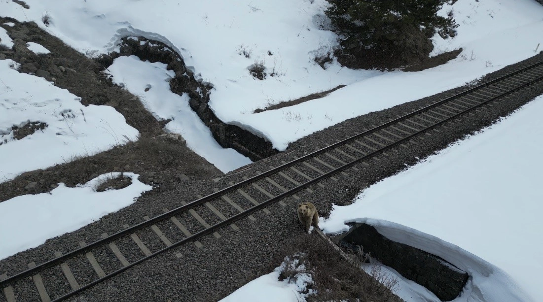 Drona karşı net bir tepki vermeyen boz ayı, ikinci bakışın ardından hızla bölgeden uzaklaştı. Ağaçlık alanın içine doğru ilerleyen ayı, daha sonra adeta poz verircesine önce açık alana çıktı. Ardından elektrik direğinin önünde ayağa kaldı. Sonrada koşarak gözden kayboldu. O anlar anbe an kaydedildi.