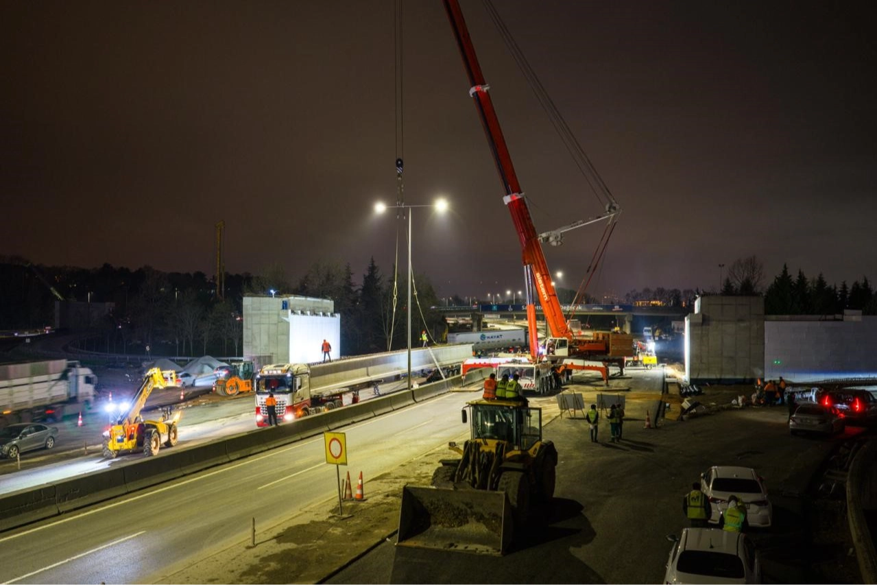 Büyükşehir Belediyesinden yapılan açıklamaya göre, kentin dört bir yanında önemli ulaşım yatırımlarına imza atan ekipler, D-130 Karayolu ile Ömer Türkçakal Bulvarı bağlantısını sağlayacak direksiyonel kavşağın en kritik aşamalarından birini geride bıraktı. Trafiğin aksamaması için gece saat 01.30'da başlayan montaj çalışmalarında, yaklaşık 80 kişilik uzman bir ekip görev aldı. Operasyon için bölgeye getirilen 700 tonluk dev vinç yardımıyla, yüksekliği 1 metre 80 santimetre, ağırlığı ise 82 ton olan 7 dev kiriş büyük bir titizlikle köprü ayaklarına yerleştirildi. Sadece 9 saat süren hummalı çalışmanın ardından güzergah, saat 10.30 sıralarında yeniden trafiğe açıldı. Başkan Büyükakın canlı yayınladı Kocaeli Büyükşehir Belediye Başkanı Tahir Büyükakın, ekiplerin gece boyunca süren zorlu mesaisini sosyal medya hesabından açtığı canlı yayınla paylaştı. Kent trafiğine nefes aldıracak bu devasa yapının yükselişi, vatandaşlar tarafından anbean takip edildi. Bölge trafiğine derin bir nefes aldıracak Toplam 862 metre uzunluğunda olan ve D-130 Karayolu ile Hoca Ahmet Yesevi Caddesi üzerinden geçen iki önemli araç köprüsünü barındıran proje, tamamlandığında bölge trafiğinde rahatlama sağlayacak. Direksiyonel bağlantı kolu devreye girdiğinde, mevcut durumda Yuvacık Sapağı üzerinden Hoca Ahmet Yesevi Caddesi'nden gelen trafik akışının birleşmesiyle oluşan darboğaz ortadan kalkacak. D-130 Karayolu ile Ömer Türkçakal Bulvarı arasındaki kesişim noktası ayrıştırılarak, güzergahtaki ulaşım çok daha düzenli, güvenli ve akıcı hale getirilecek.