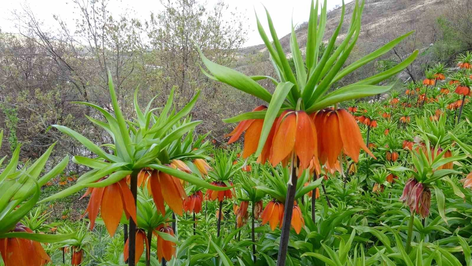 Malatya’nın Akçadağ ilçesinde baharın gelişiyle birlikte açan ters laleler doğaya renk kattı.