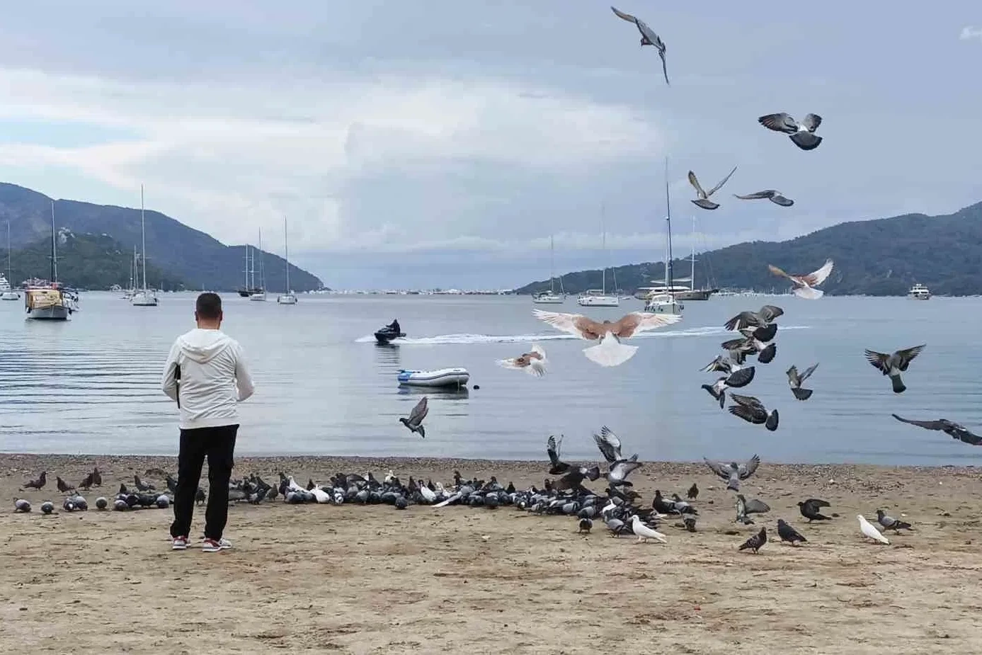 Türkiye’nin en gözde turizm merkezlerinden biri olan Muğla’nın Marmaris ilçesinde güvercinler sahili mesken tuttu. Vatandaşların ilgi odağı haline gelen güvercinler renkli görüntüler oluşturuyor. Marmaris Merkez’de bulunan ve halk plajı olarak da adlandırılan sahile gelen yerli ve yabancı turistler alay halinde dolaşan güvercinler arasında sahilde yürüyüş yapmanın keyfini yaşıyor. Bazı vatandaşlar güvercinleri beslerken, bazı vatandaşlar ise muhteşem manzaraya sahip halk plajında güvercinlerle birlikte hatıra fotoğrafı çektiriyor. Güvercinlerle birlikte her gün denize oltasını atıp emekliliğin keyfini yaşayan vatandaşlardan Ahmet Çelik, güvercinlerin sahile ayrı bir güzellik kattığını belirterek, "Ankara’da ikamet ediyordum. Karavanla ülkenin her yerini gezdik. Ancak Marmaris’ten ayrılamadık. Ankara’daki evi karavanı satıp Marmaris’ten ev aldık. Şimdi günümüzü deniz kenarında güvercinlerle geçiriyoruz. Buranın esas sahibi onlar. Biz de onların buraya kattığı güzellikleri yaşayarak hayatımızı burada sürdürüyoruz" diye konuştu. Sahili terk etmemesi için vatandaşlar tarafından beslenen güvercinler kış döneminde hem sahilin keyfini yaşıyor hem de Marmaris’in güzelliğine güzellik katıyor.