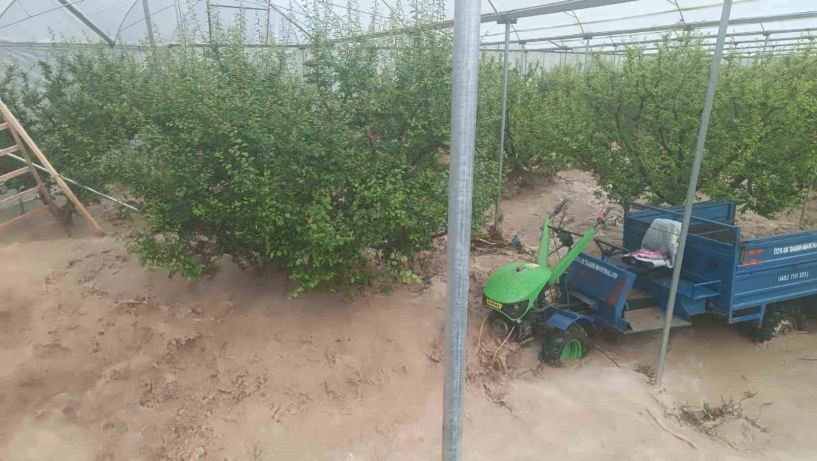 Özellikle kırsal bölgelerde yaşanan su taşkınları risk oluştururken bir yol çöktü, bazı seralar zarar gördü.