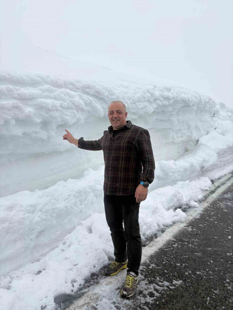 Cep telefonuyla kaydedilen görüntülerde karayolunun beyaza bürünmesi ve kar yağışı ve karayolunun iki tarafında yığılan metrelerce yükseklikte buluna kar kütleleri yer alıyor.