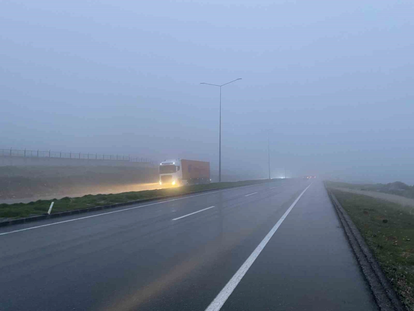 kilometresinde bulunan Pamuk Geçidi’nde etkili olan yoğun sis ve sağanak yağış sürücülere zor anlar yaşattı.