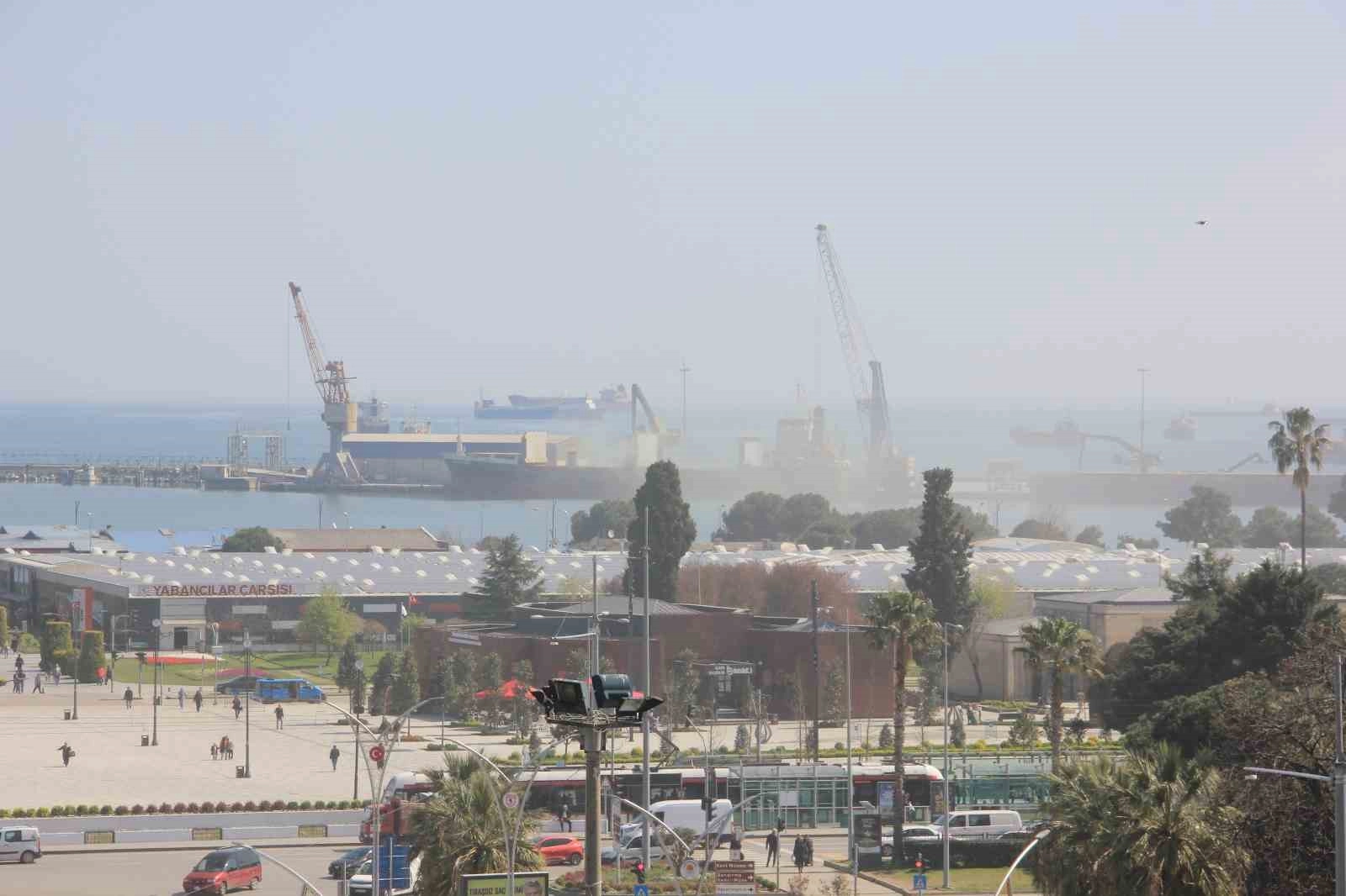 Samsun’da limanda gemiye yapılan yükleme sırasında oluşan yoğun toz bulutu, rüzgarın etkisiyle kent merkezine taşındı.