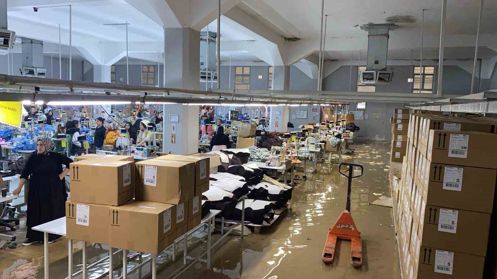 Yağış nedeniyle cadde ve sokaklarda su birikintileri oluştu. Şiddetli yağış sonrası bir tekstil fabrikasını su bastı. Fabrikada bulunan işçiler, biriken suyu tahliye etmek için uzun süre çalışma yürüttü.