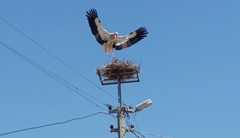 Köydeki kadınlarla birlikte toplanan çalı-çırpılarla bir yuva hazırlandı. ADM görevlileri platformu direğe monte ettikten sonra, hazırlanan yuva platformun üzerine yerleştirildi ve sabitlendi. Bir süre sonra leylekler gelerek yuvaya kavuştu.