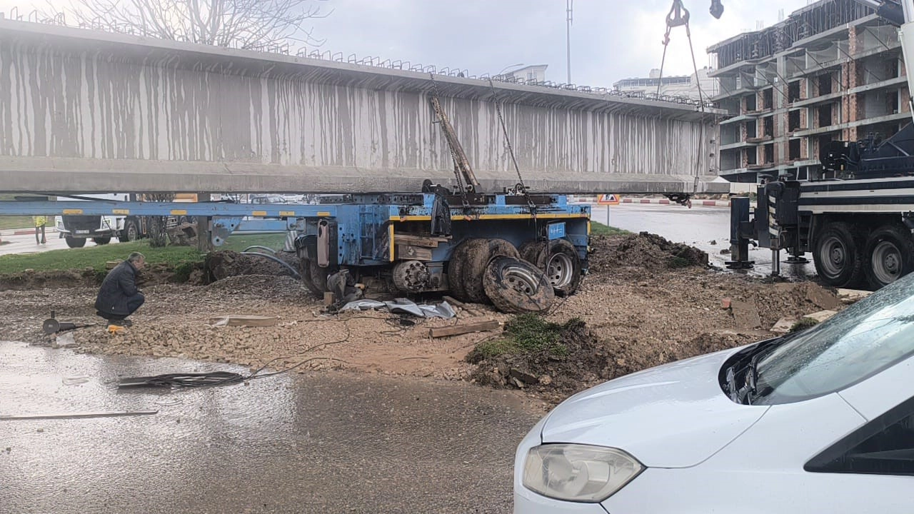 Olay, dün akşam Siirt-Bitlis kara yolu Mezopotamya Kavşağı’nda meydana geldi. Pervari ilçesinde yapımı süren viyadük inşaatı için bir tırla bölgeye nakledilen 50 metrelik beton köprü kirişi, tır kavşaktan dönüş yaparken yolda takılı kaldı. Kirişin yolu tamamen kapatması ile bölgede trafik akışı tamamen durdu. Trafik ekipleri, sürücüleri alternatif yollara yönlendirdi. İhbar üzerine bölgeye sevk edilen ekipler, vinç desteğiyle çalışma başlattı. Çalışmaların devam ettiği kaydedildi.