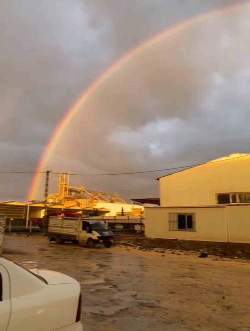 Şanlıurfa’nın Siverek ilçesinde sağanak yağışın ardından ortaya çıkan gökkuşağı eşsiz manzara oluşturdu.