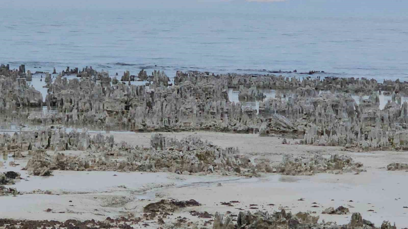 Türkiye’nin en büyük gölü olan Van Gölü’nün Adilcevaz sahilinde yaşanan yağışlara rağmen su seviyesinin düşmesiyle birlikte ortaya çıkan mikrobiyalitler dikkat çekiyor.