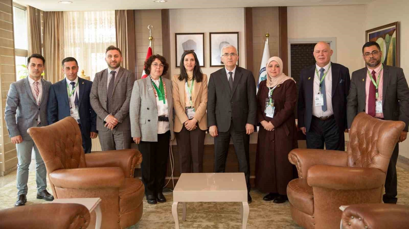Rektör Prof. Dr. Kamil Çolak, etkinliğe katılmak üzere ESOGÜ’ye gelen Filistin Hebron Üniversitesi ekibini makamında ağırlarken, ziyarette uluslararası ilişkilerden sorumlu Rektör Yardımcısı Prof. Dr. Emine Gümüşsoy, ESOGÜ Uluslararası İlişkiler Birimi Koordinatörü Doç. Dr. Mahmut Sami İşlek ve Erasmus ICM program sorumlusu Dr. Emrah Orakcıoğlu da bulundu. Toplantıda Filistin’den gelen konuklar ile akademik işbirliklerinin daha da ileriye götürülmesi için atılacak adımlar görüşülürken, Rektör Prof. Dr. Kamil Çolak ziyaretten duyduğu memnuniyeti ve Filistin’e desteklerini dile getirdi. Hebron Üniversitesi Uluslararası İlişkiler Birimi Koordinatörü Dr. Ahmad Ghayyada’nin liderlik ettiği ekip ise ESOGÜ ile derin bir ortaklık kurulduğunu, bu etkinliğin Filistin-Türkiye dostluğuna kıymetli katkılarda bulunduğunu ifade etti. Dr. Ahmad Ghayyada aynı zamanda işgalden dolayı Filistin’de yaşanan zorluklar ve seyahat sırasındaki sıkıntılarını da dile getirdi. Toplantı ikramlar ve hediye takdimleri ile sona erdi.