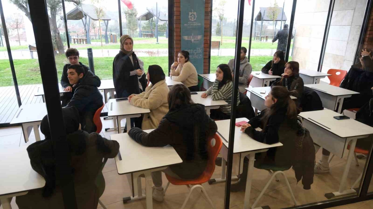 Gölcük Millet Bahçesi’ndeki 560 metrekarelik alana, gençlerin yeni ders çalışma mekanı olacak Kılavuz Derslik kazandırıldı.