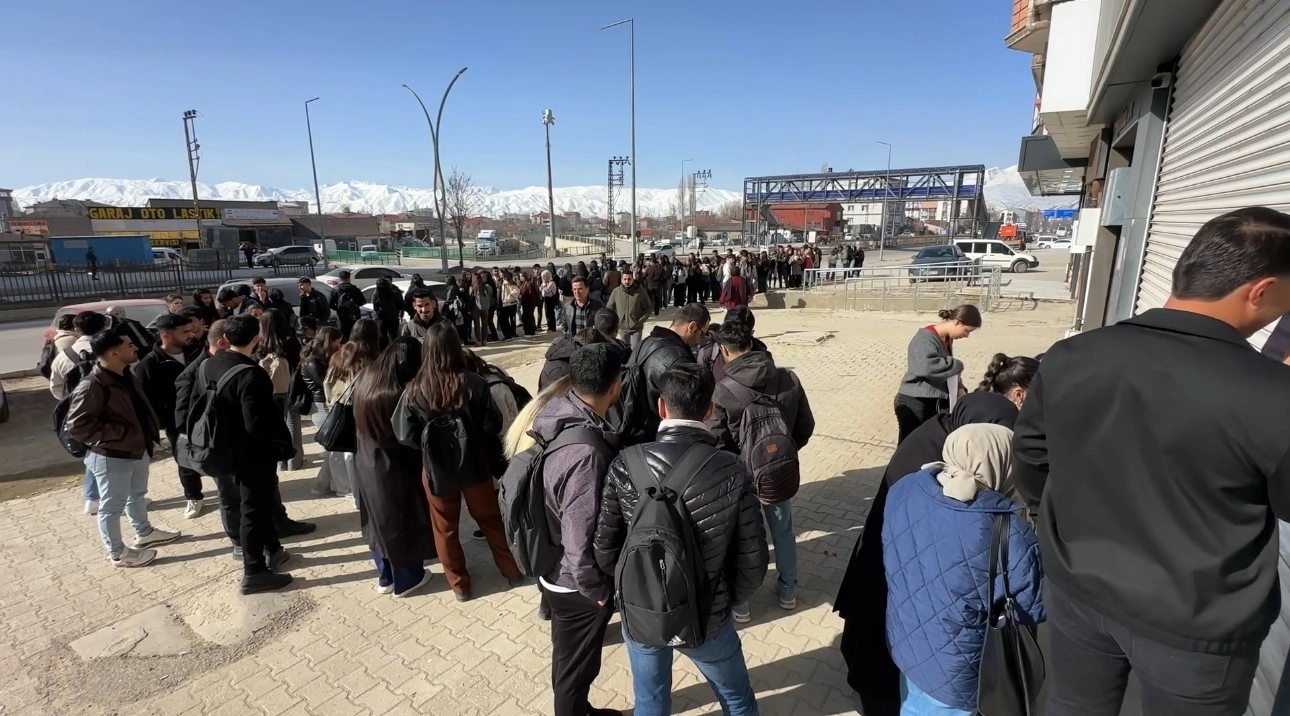 Hakkari’nin Yüksekova ilçesinde öğrenciler deprem riski nedeniyle yıkılıp kiralık bir binada hizmet veren kütüphanenin önünde sabahın ilk ışıklarıyla uzun kuyruklar oluşturdu.