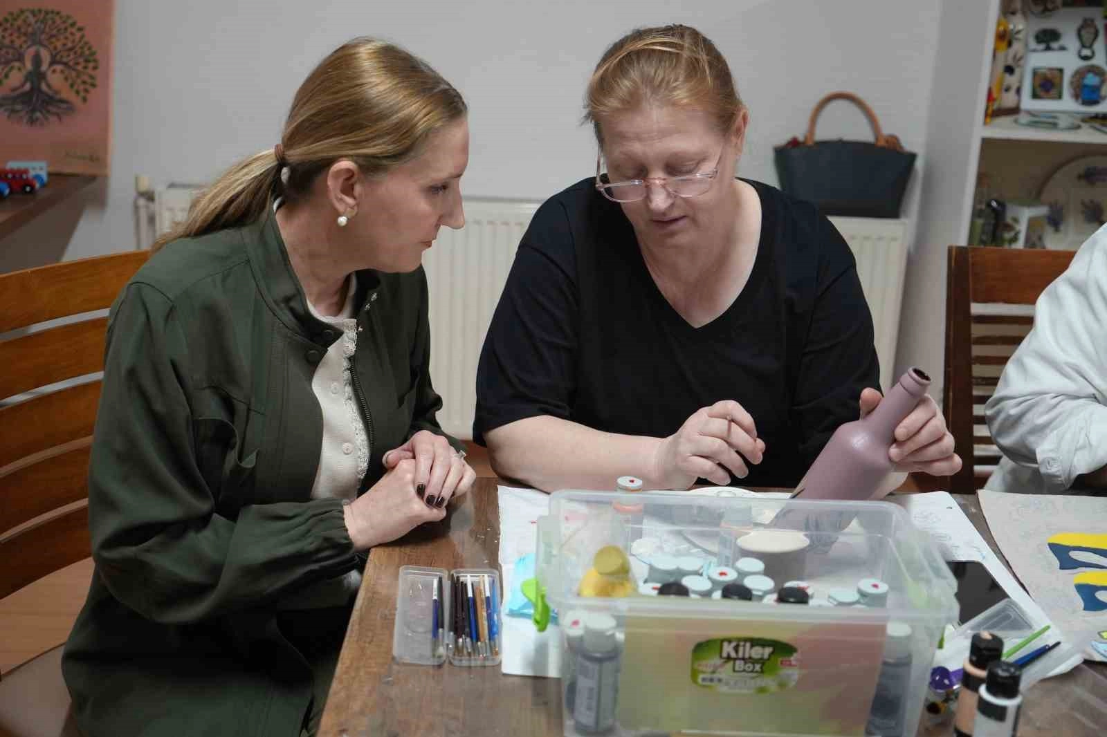 Mahalle evlerinin sadece kadınlara değil, çocuklara da kapılarını açtığını dile getiren Ergin, 7 mahalle evinde resim, müzik ve okul hayatına destek sağlayan eğitici programlar yürütüldüğünü kaydetti. Atölye çeşitliliğine de değinen Ergin, deri, keçe, takı tasarım ve vitray gibi branşlarda üretimin kesintisiz sürdüğünü ifade etti.