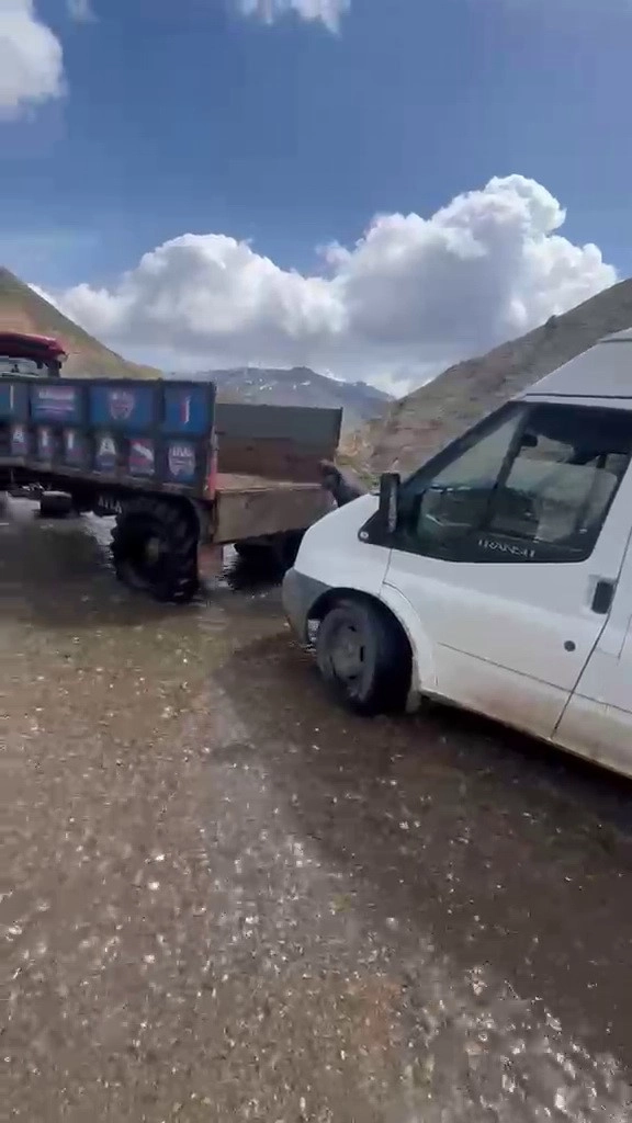 Bayram coşkusunu yaşamak için yola çıkan öğrenciler, olumsuz yol şartları nedeniyle yolda kalırken, köylüler traktörlerle yardıma koştu. Uzun uğraşlar sonucu servis bulunduğu yerden çıkarıldı.