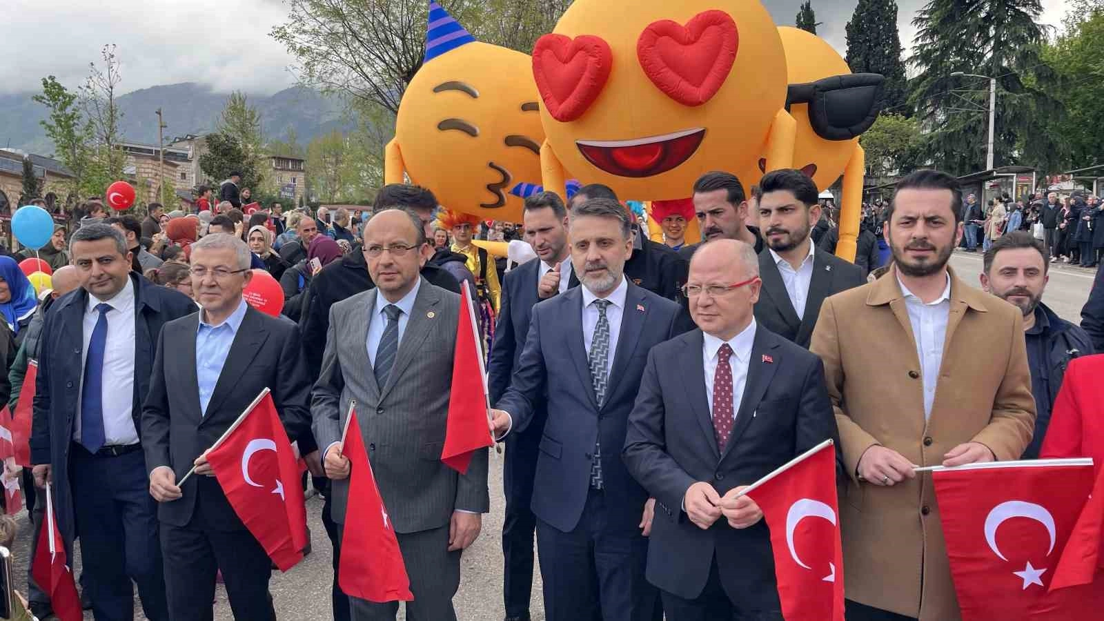 Bursa’da 23 Nisan Ulusal Egemenlik ve Çocuk Bayramı kutlamaları kapsamında kortej yürüyüşüne gencinden yaşlısına yüzlerce kişi katıldı