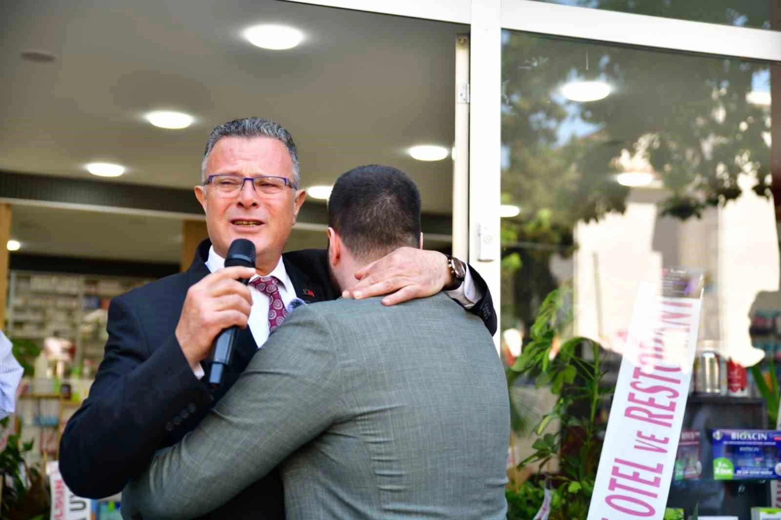 Alaşehir Belediye Başkanı Ahmet Öküzcüoğlu’nun oğlu Eczacı Alp Öküzcüoğlu tarafından açılan eczanenin açılışında baba ve oğul gözyaşlarına hakim olamazken, mesleği eczacılık olan Manisa Büyükşehir Belediye Başkanı Besim Dutlulu da genç eczacıya işini sevmesi ve siyasete girmemesi konusunda tavsiyelerde bulundu.