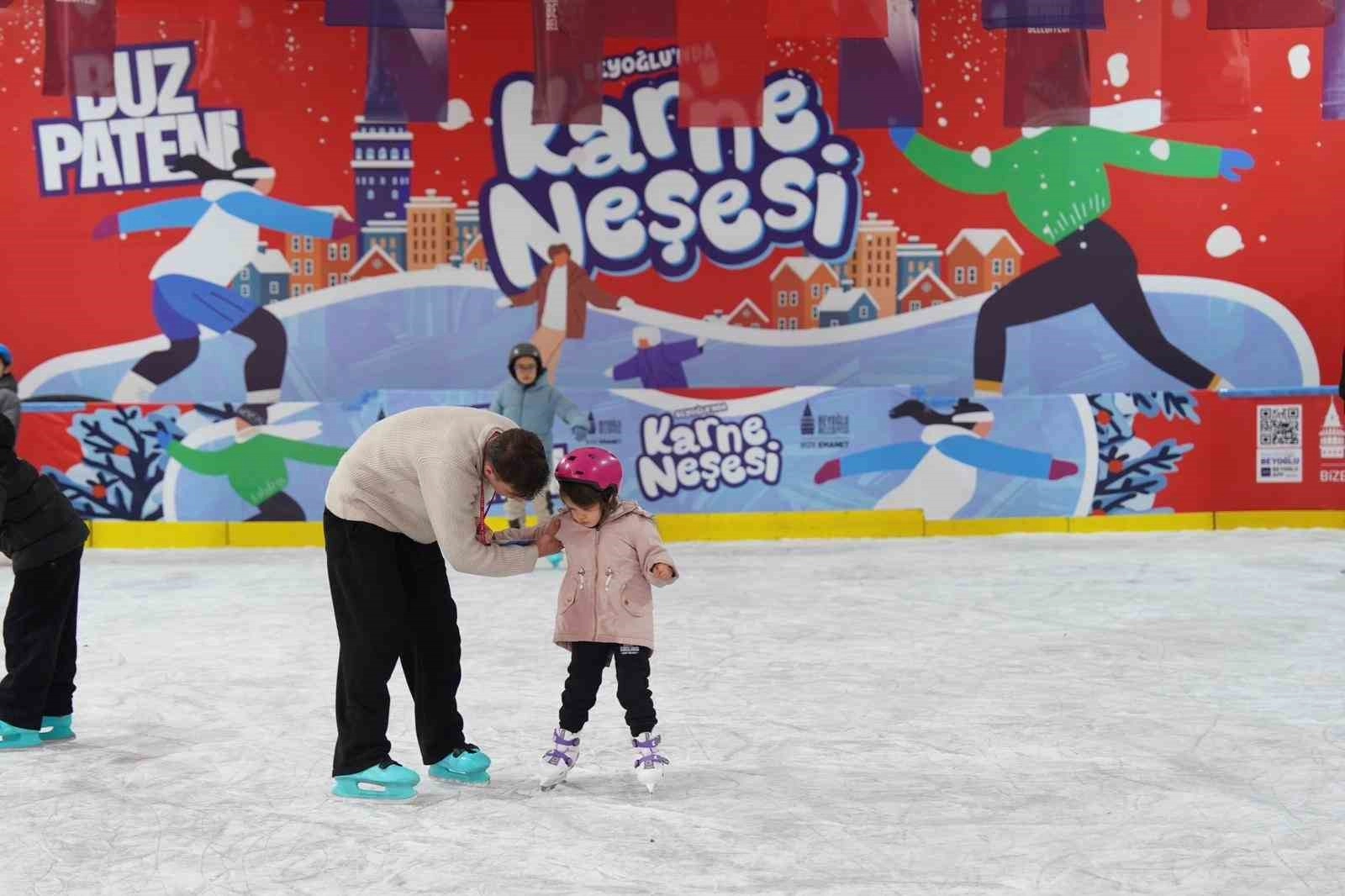 6-14 yaş arası çocuklara ücretsiz buz pateni yapma imkanı sunan etkinlik tatil süresince devam edecek.