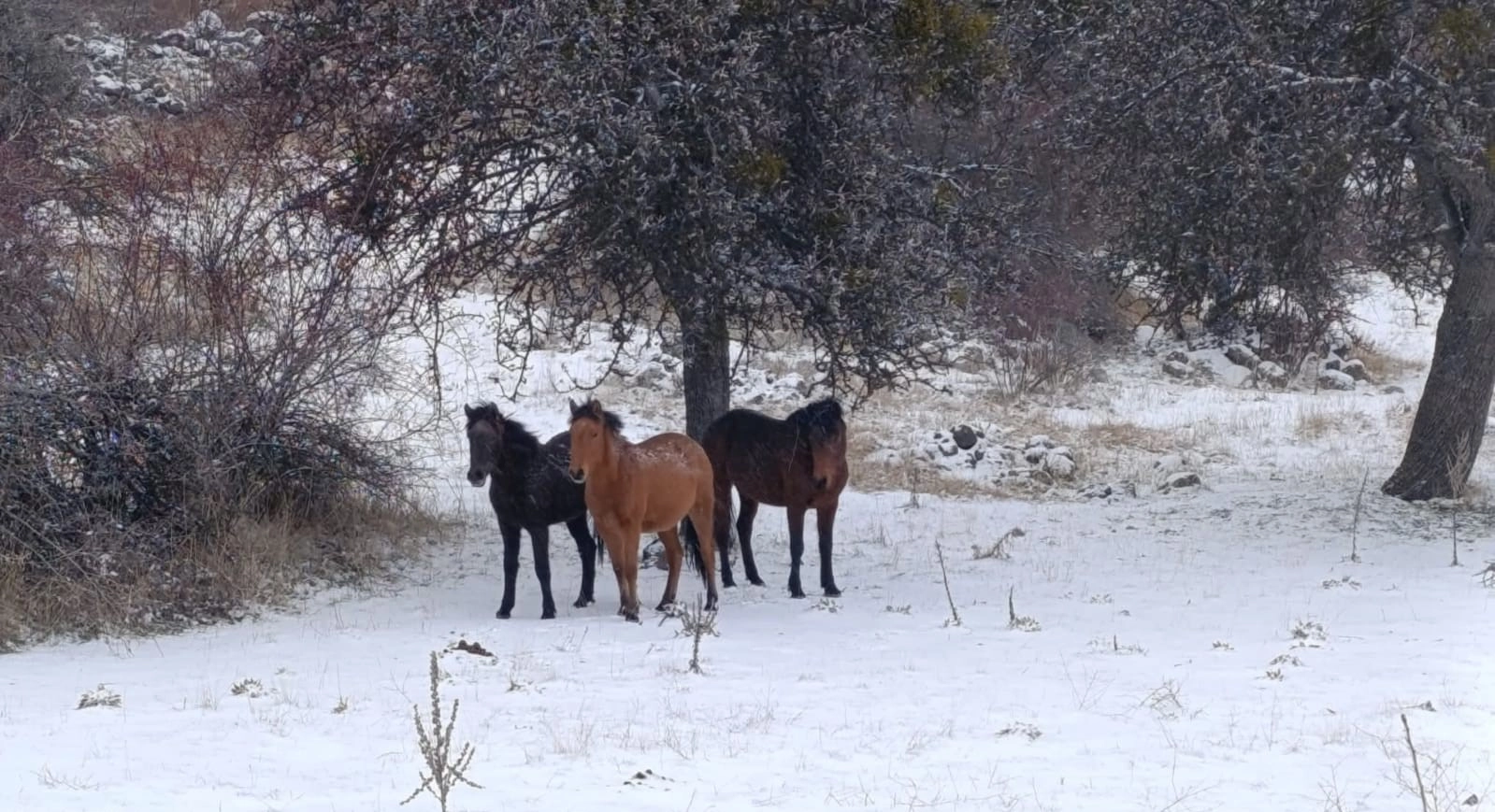 Ankara’nın Beypazarı ilçesinde kar altındaki yılkı atları kartpostallık görüntü oluşturdu.