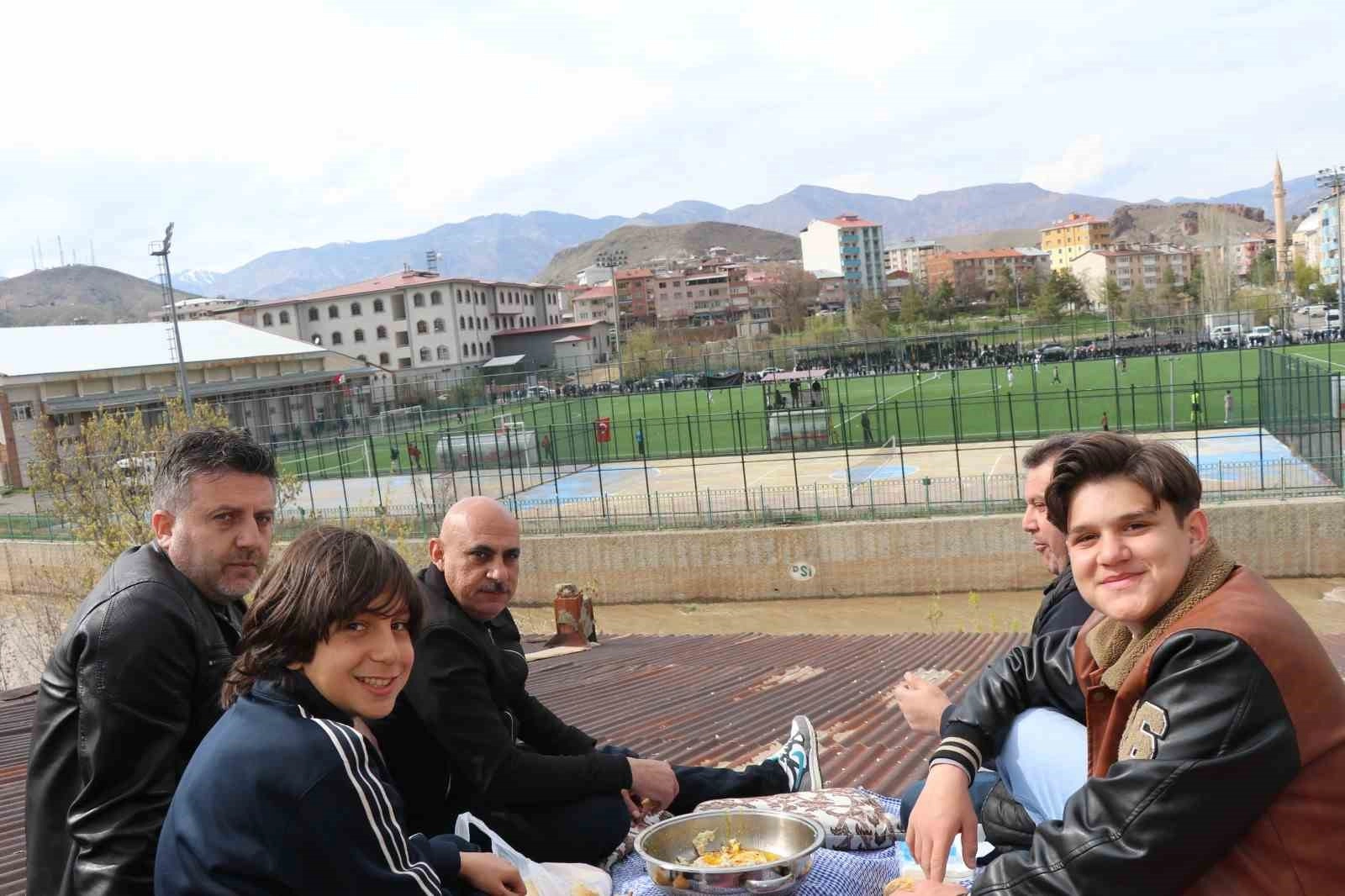 Evlerinin çatısına çıkan Oltulular, yumurta kayganası yiyerek takımlarının maçını izleyip destek verdi.