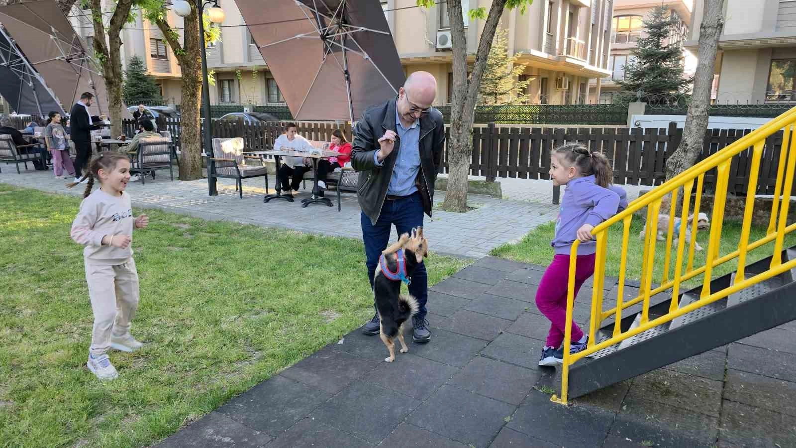 Düzce’de 5 yıl önce sokaktan sahiplenilen ve internetteki videolar yardımıyla eğitilen "Ceku" isimli köpek, çocuk parkında sergilediği sevimli tavırlarıyla görenleri tebessüm ettiriyor.