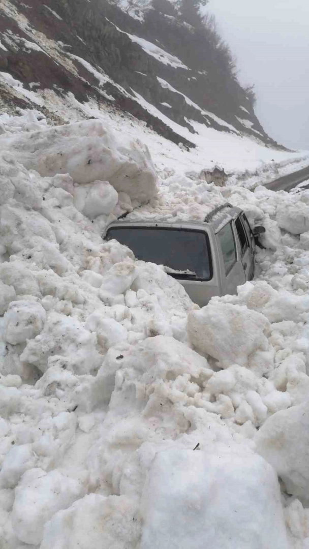 Büyük Harman Yaylası’na gitmekte olan 4 kişinin bulunduğu araç, Geçitli mevkiinde yoldan geçiş yaptığı sırada üzerlerine gelen çığın altında kaldı. Seyir halindeki aracın bir kısmı çığ altında kalırken, araçta bulunan 4 kişi kendi imkanlarıyla araçtan inmeyi başardı. Olayda herhangi bir yaralanma yaşanmadığı öğrenildi.