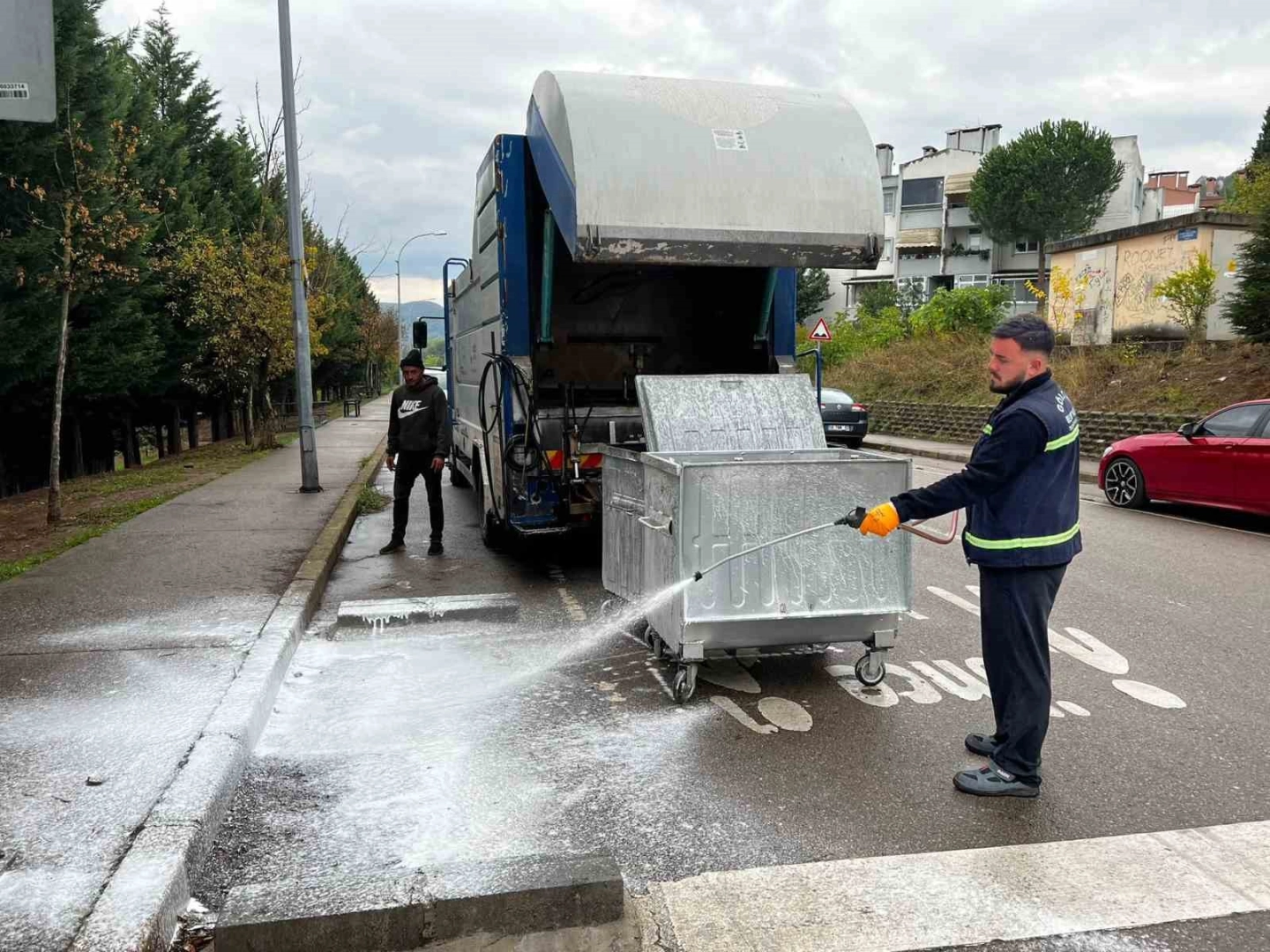 Çöp konteynerler yıkanarak dezenfekte ediliyor