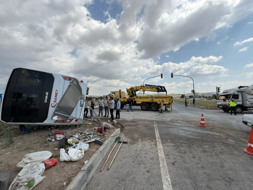 Çarpışmanın etkisiyle servis aracı orta refüje yan yattı. Kamyonet yan devrilirken içindeki 8 adet büyükbaş hayvanlar ise yola savruldu.