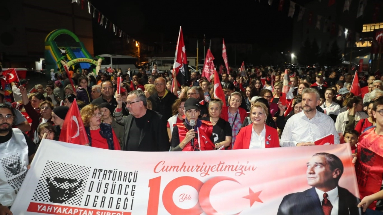 İzmit Belediyesi, 29 Ekim Cumhuriyet Bayramı dolayısıyla Atatürkçü Düşünce Derneği (ADD) Yahya Kaptan Şubesi ile 100. Yıl Korteji düzenledi. Yahya Kaptan pazar alanından başlayan yürüyüş, atılan turun ardından yine aynı noktada sona erdi. Birbirinden renkli görüntülere sahne olan kortejde vatandaşlar bayrak sallayarak, marşlar söyleyerek Cumhuriyet coşkusunu yaşadı. Yürüyüşe İzmit Belediye Başkanı Fatma Kaplan Hürriyet ve ADD Yahya Kaptan Şube Başkanı Yakup Gökçe de katıldı. Cumhuriyetin büyük bir mücadele ve özveriyle kurulduğunu ifade eden Gökçe, "Emperyalistlerin ülkemizi karıştırmasına müsaade etmeyeceğiz. Atatürk’ün gösterdiği yolda ilerlemekten yılmayacağız. Biz bu ülkeyi kesinlikle tarikatlara, medreselere, cemaatlere bırakmayacağız. Bunun için de mücadele edeceğiz. Cumhuriyetimizin 100’üncü yılı kutlu olsun” dedi.