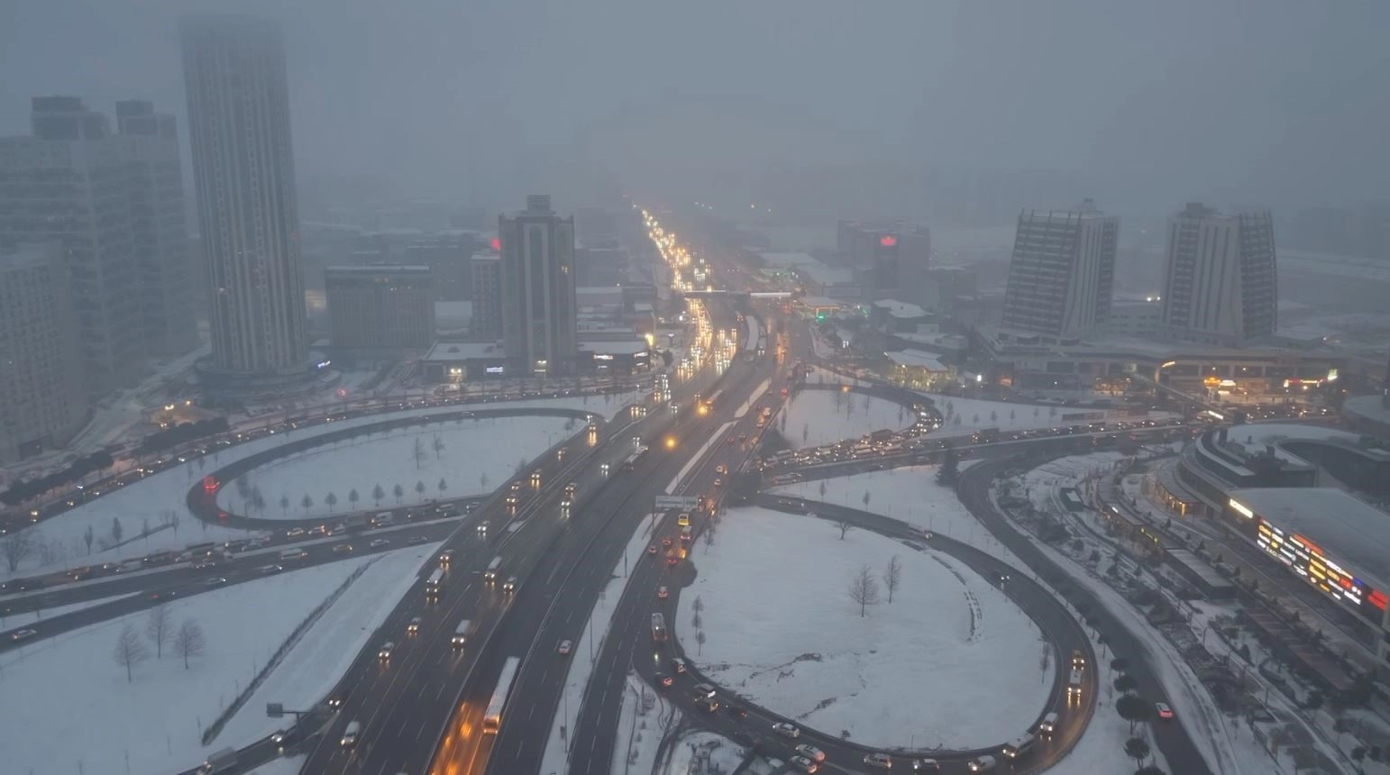 Karla kaplanan Esenyurt havadan görüntülendi.