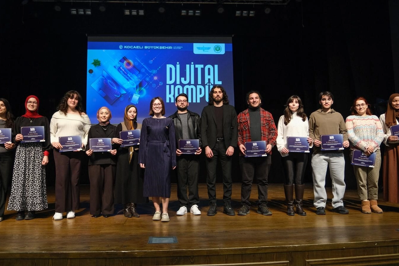 Dijital Kampüs’te yazılımdan yapay zekaya, tasarımdan dijital içerik üretimine kadar uzanan eğitimleri tamamlayan 235 katılımcıya düzenlenen törenle sertifikaları takdim edildi. Dijital İnovasyon Merkezi’nde yüz yüze gerçekleştirilen 10 haftalık program kapsamında yazılımdan yapay zekaya, tasarımdan dijital içerik üretimine kadar uzanan eğitimleri tamamlayan öğrenciler; fikirlerini üretime, emeklerini başarıya dönüştürdü. Halkevi Gençlik Merkezi’nde düzenlenen Dijital Kampüs Eğitim Programları Sertifika Töreni’ne Gençlik ve Spor Hizmetleri Dairesi Başkanlığı Bilim, Teknoloji ve İnovasyon Şube Müdürü Mine Pir Kazan, Kocaeli Üniversitesi Sürekli Eğitim Merkezi Müdürü Prof. Dr. Arif Özkan, Dijital Kampüs eğitmenleri, öğrenciler ve misafirler katılım gösterdi. Program öncesinde gerçekleştirilen Kahoot Bilgi Yarışması’nda öğrenciler bilgilerini yarıştırarak keyifli vakit geçirdi. Dijital Kampüs’te 11 eğitim programı Kocaeli’de gençlerin kariyer yolculuğunda önemli bir durak olan Kılavuz Gençlik, geleceği bugünden inşa eden bir nesil yetiştirmeye devam ediyor. Gençlerin dijital becerilerini geliştirmeyi amaçlayan Dijital Kampüs; kapsamlı bir eğitim programı olarak hayata geçirildi. Program kapsamında yapay zeka, fotoğrafçılık ve içerik üretimi, video kurgu ve montaj, Adobe grafik tasarım, siber güvenlik, oyun yazılım ve geliştirme, Python programlama, dijital senaryo, sosyal medya ve içerik üretimi, dijital pazarlama, girişimcilik ve ekonomi alanlarında eğitimler veriliyor. Dijital Kampüs, gençlerin fikirlerini gerçeğe dönüştürdüğü bir üretim alanı olma özelliği taşıyor. Yüz yüze teori ve uygulama temelli ilerleyen eğitim programlarını başarıyla tamamlayan katılımcılar Kocaeli Üniversitesi onaylı ve e-Devlet üzerinden doğrulanabilir sertifika almaya hak kazanıyor.
