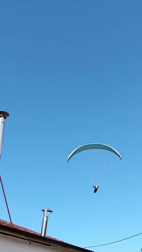 Olay, Kilimli ilçesinde geçen pazar günü meydana geldi. Arkadaşlarıyla bir kıraathanede oturan Okan Ece, evlerin çatılarına kadar alçalarak süzülen yamaç paraşütçüsünü fark etti. O anları cep telefonu kamerasıyla kaydetmeye başlayan Ece, gökyüzündeki pilota seslenerek "Gel çay iç, gel" diyerek davette bulundu. Havadan sahile ineceğini belirten pilot, inişini güvenli bir şekilde tamamladıktan kısa bir süre sonra kıraathaneye gelerek Ece ve arkadaşlarının masasına misafir oldu.