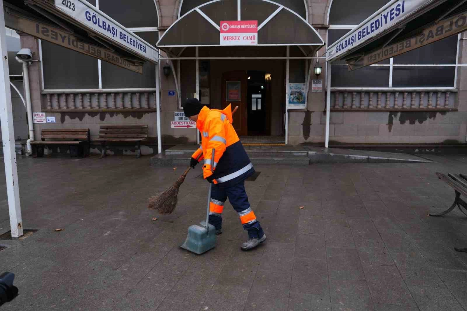 Gölbaşı Belediyesi ekipleri tarafından yürütülen çalışmalarda camilerin iç mekanları buhar makineleri kullanılarak detaylı şekilde temizlendi. Özellikle halılar, hem hijyen hem de hoş koku sağlanması amacıyla gül suyuyla yıkanarak ibadete hazır hale getirildi. Bunun yanı sıra mihrap, minber, kürsü, ayakkabılıklar, kapı ve pencereler dezenfekte edilirken; şadırvanlar, abdesthaneler ve cami avlularında da kapsamlı temizlik ve bakım çalışmaları yapıldı.