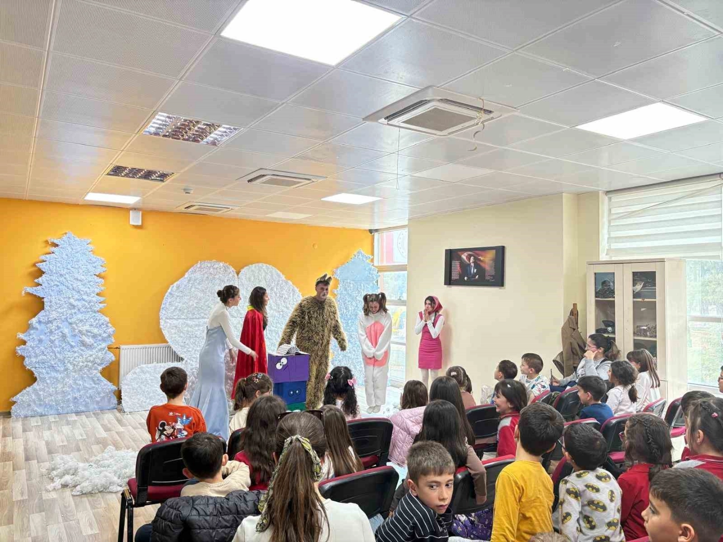 Merkezin gönüllü gençlerinden oluşan tiyatro ekibi, hazırladıkları ’Masal Kahramanları’ adlı oyunu minik izleyicilerle buluşturdu.