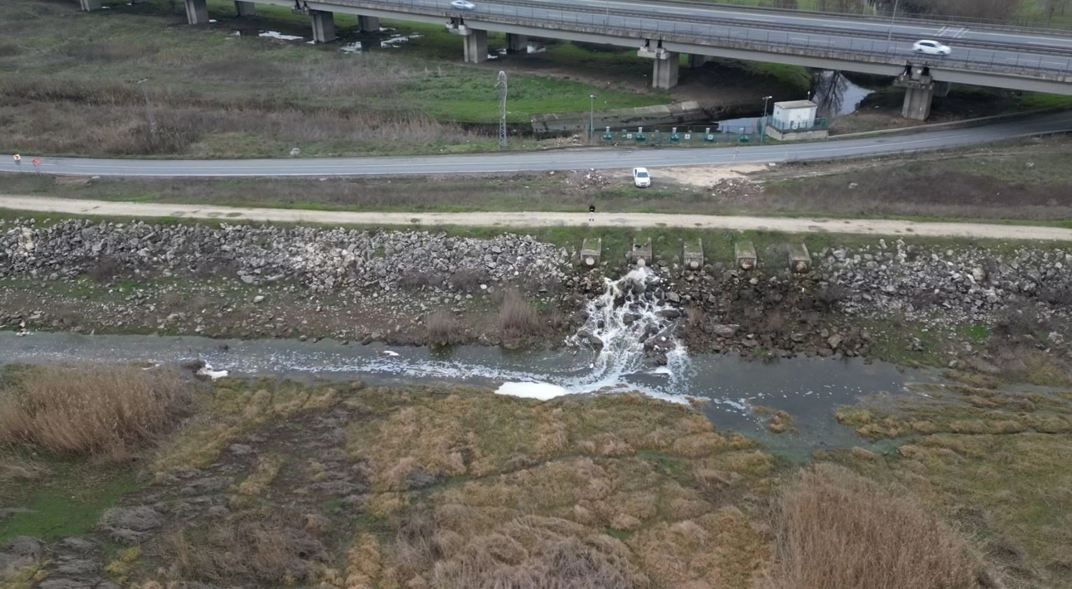 Biriken atık suyun içme suyu kaynağı olan Büyükçekmece Barajı’na döküldüğü anlar dron ile görüntülendi.