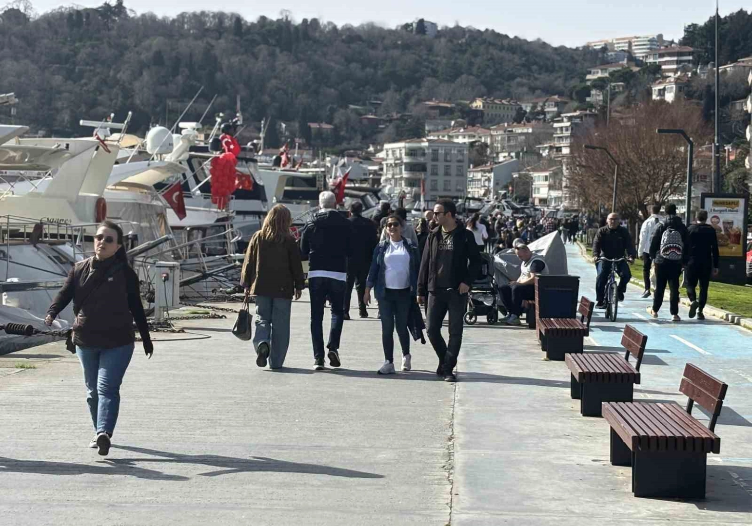 Son hafta yağmurun etkisinde geçiren İstanbul’da güneş yüzünü gösterdi. Şubat ayının en sıcak gününün yaşandığı İstanbul’da vatandaşlar soluğu sahilde aldı. Hafta sonu tatilini de fırsat bilen yerli ve yabancı turistler aileleriyle birlikte güzel havanın keyfini çıkarmak için Bebek sahiline akın etti.