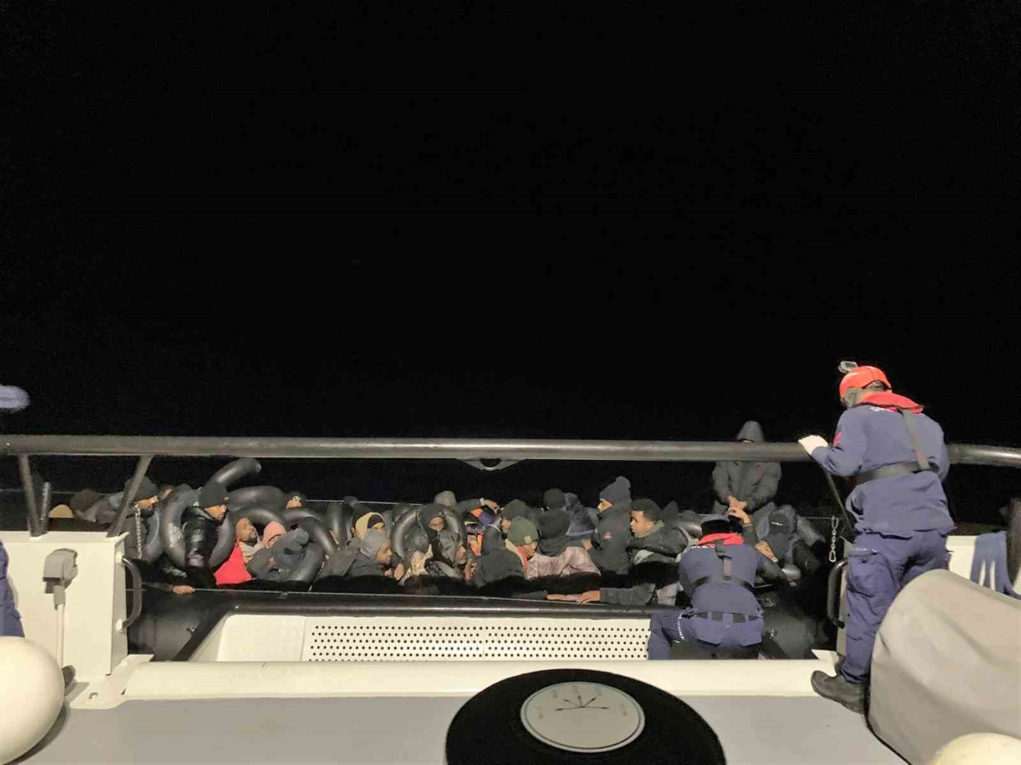 Günün ilk operasyonu sabah saat 07.15 sıralarında gerçekleşti. Lastik bot içerisinde bir grup düzensiz göçmen olduğu bilgisini alan Sahil Güvenlik botları (TCSG-902, KB-86), kısa sürede bölgeye ulaştı. Hareket halindeki lastik botu durduran ekipler, içerisindeki 44 düzensiz göçmeni yakalayarak karaya çıkardı.