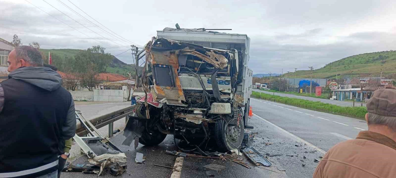 İzmir’in Aliağa ilçesinde Çiğli Belediyesine ait kamyona arkadan çarpan kamyonun sürücüsü hayatını kaybetti.