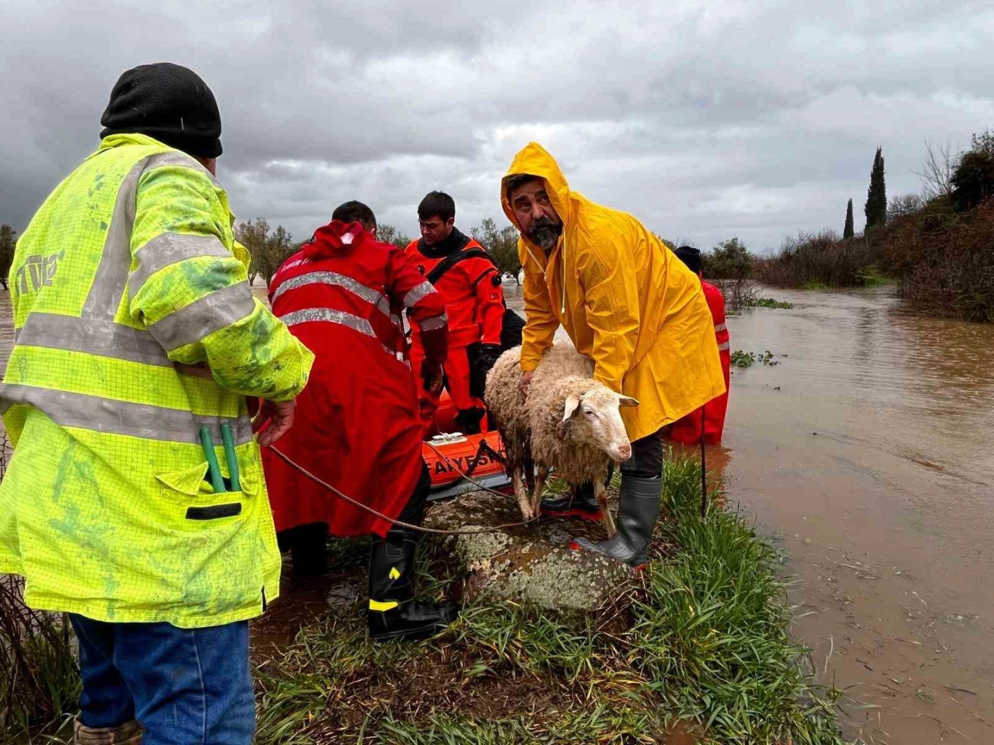 Bergama Kaşıkçı Mahallesi’nde dere taşması sonucu mahsur kalan hayvanlar için Veteriner İşleri ve İtfaiye Dairesi Başkanlığı ekipleri yönlendirildi. Koyun, tavuk ve köpekleri kurtarma çalışmaları devam ediyor. Dağıstan Mahallesi’nde seralarda oluşan hasara yönelik inceleme başlatıldı. Ayrıca İZSU ve Büyükşehir Belediyesi ekipleri Torbalı Ayrancılar Mahallesi Hayıtözü Deresi’ndeki taşkına ve su baskınlarına da müdahale ediyor. Büyükşehir Belediyesi, kent merkezindeki taşkın ve su birikintisine yönelik çalışmalarına da devam ediyor.