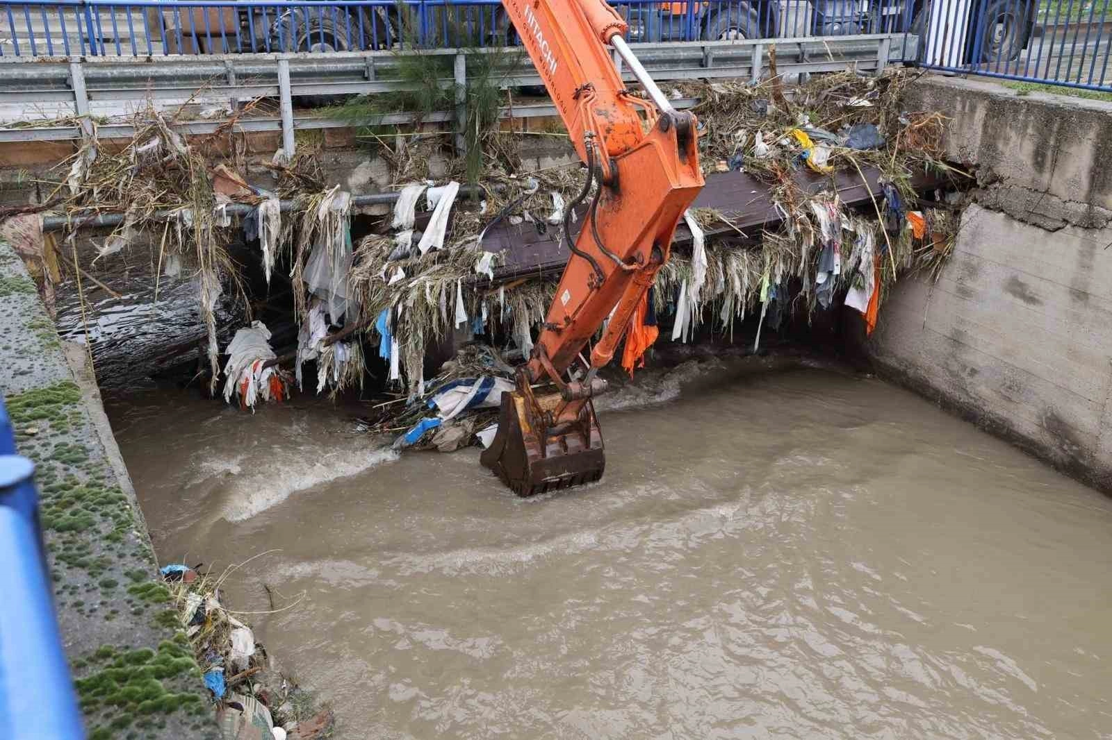 Yoğun yağış dolayısıyla dere ağızlarındaki malzemeler temizleniyor