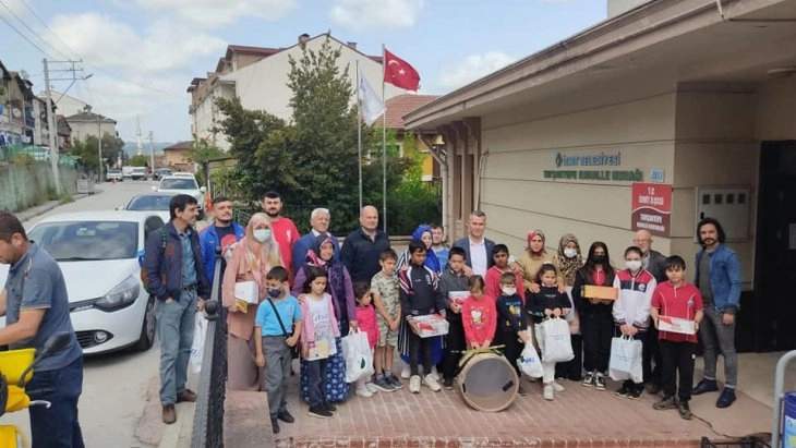 Kocaeeli'nin İzmit ilçesine bağlı Tavşantepe Muhtarı İbrahim Efe , Okul Aile Birliği görevlileri ve mahallenin Ramazan davulcuları bir araya gelerek bayram öncesi çocukların yüzlerini güldürdü.