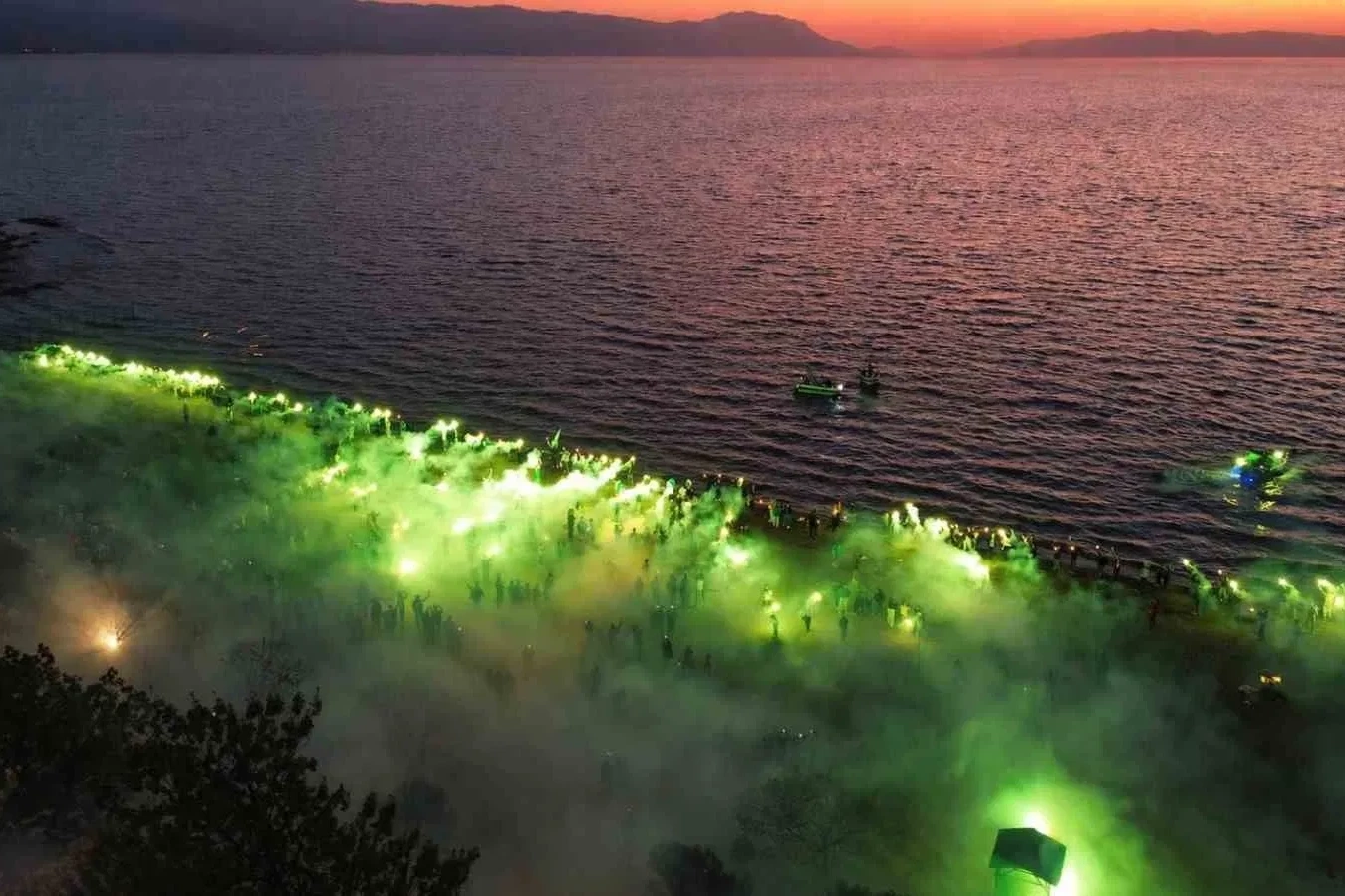 TFF 2. Lig’de şampiyonluğunu ilan ederek TFF 1. Lig’e yükselen Bursaspor için İznik’te düzenlenen kutlamalarda sahil yeşil-beyaza bürünürken, yakılan meşaleler görsel şölen oluşturdu. İznik Bursasporlular Derneği tarafından organize edilen şampiyonluk kutlamasında yeşil-beyaz renklere gönül veren çok sayıda taraftar bir araya geldi. İznik sahilinde gerçekleştirilen kutlamalarda meşaleler yakılırken, marşlar ve tezahüratlar eşliğinde büyük coşku yaşandı. Sahil boyunca oluşan yeşil-beyaz atmosfer renkli görüntülere sahne oldu. TFF 1. Lig’e yükselen Bursaspor’un başarısı İznik’te gururla kutlanırken, taraftarlar şampiyonluğu doyasıya yaşadı. Meşalelerin aydınlattığı sahilde oluşan manzara görsel şölen oluştururken, kutlamalar gece boyunca sürdü. İznik Belediye Başkanı Kağan Mehmet Usta, şampiyonluk kutlamasına ilişkin yaptığı açıklamada, "Burası İznik, yeşil beyaza sevdalı insanların kenti. İznik Bursasporlular Derneğimizin şampiyonluk kutlaması coşku ve heyecanla gerçekleşti. İlk günden son güne kadar 7’den 70’e genciyle yaşlısıyla, İznik olarak Bursaspor’umuzun yanında olduk. Şimdi sıra TFF 1. Lig’de ve sonra Süper Lig’de. Şampiyonluk bu şehre çok yakışıyor" dedi. Başkan Usta, sezon boyunca İznik halkının Bursaspor’a güçlü destek verdiğini vurgularken, yeşil-beyaz sevdanın ilçede her zaman karşılık bulduğunu ifade etti. İznik Bursasporlular Derneği üyeleri de desteklerinden dolayı Başkan Usta’ya teşekkür etti.