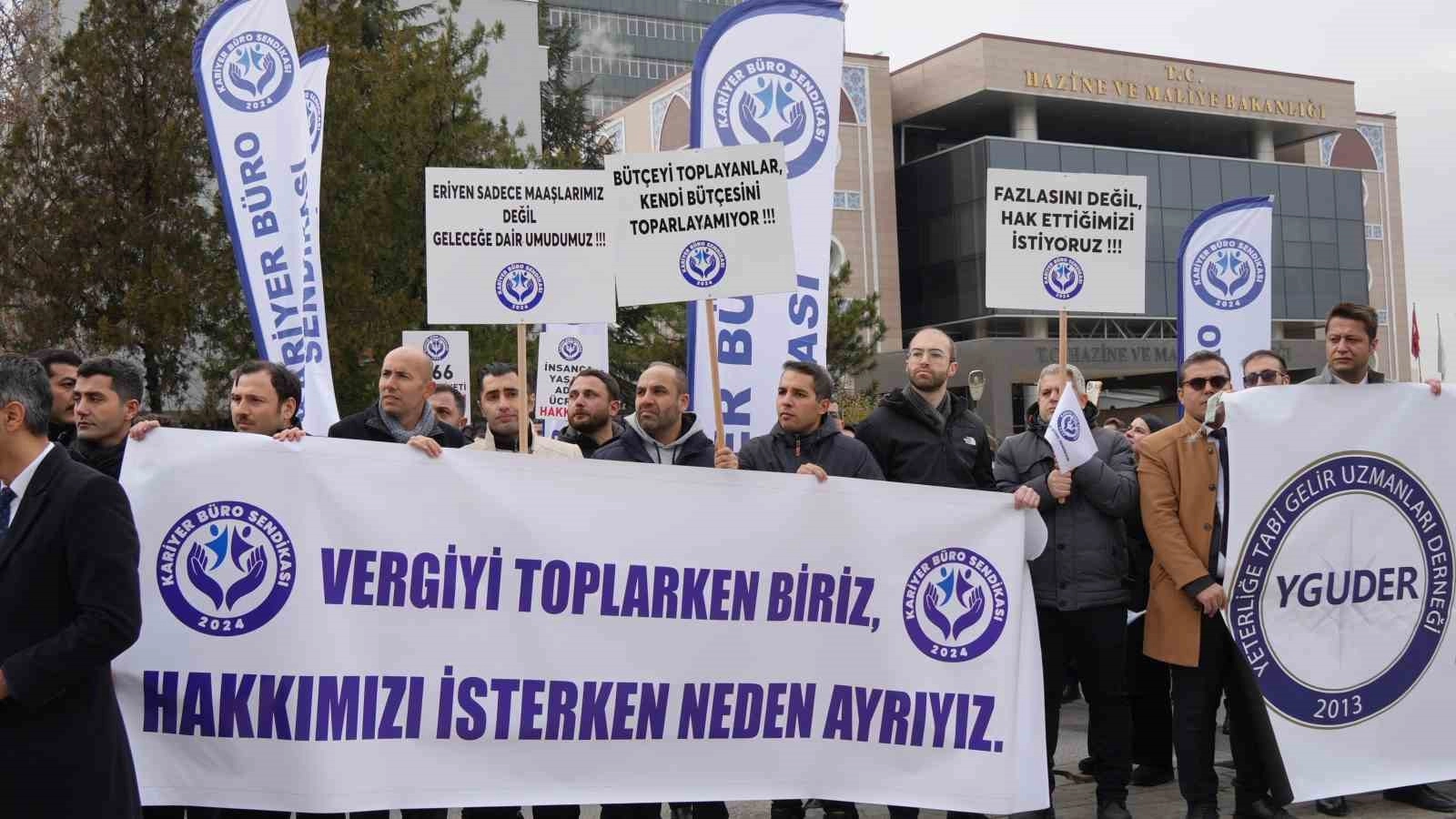 Kariyer Büro Sendikası, Ankara’da Hazine ve Maliye Bakanlığı önünde taleplerini dile getirmek amacıyla eylem düzenledi. Farklı illerden gelen sendika üyelerinin katılımıyla yapılan açıklamada; sendikanın temsil ettiği gelir uzmanları, muhasebe uzmanları, SGK denetmenleri, il göç uzmanları, muhasebe denetmenleri, milli emlak uzmanları, ticaret denetmenleri, mali hizmetler uzmanları, vergi istihbarat uzmanları başta olmak üzere kariyer meslek mensuplarının özlük hakları ile seyyanen zam talepleri gündeme taşındı.