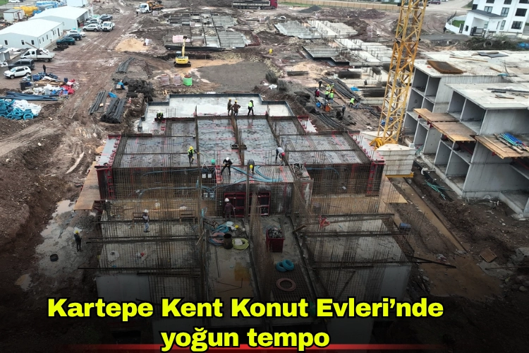 Toplam 12 bloktan oluşan Kartepe Kent Konut Evleri projesinde altyapı ve üstyapı imalatları eş zamanlı ilerliyor. Şantiye alanında yoğun bir çalışma sürerken, 9 blokta kazı işlemlerinin tamamlandığı, 7 blokta ise temel imalatlarının yerine getirildiği belirtildi. Bir blokta betonarme imalatı tamamlanırken, bir diğer blokta son kat beton dökümüne geçildi. Sahada aynı anda dolgu, su yalıtımı, kalıp ve demir çalışmaları titizlikle yürütülüyor. Her adımı planlı ve koordineli bir şekilde ilerleyen proje, modern bir yaşam alanının temellerini adım adım yükseltiyor.