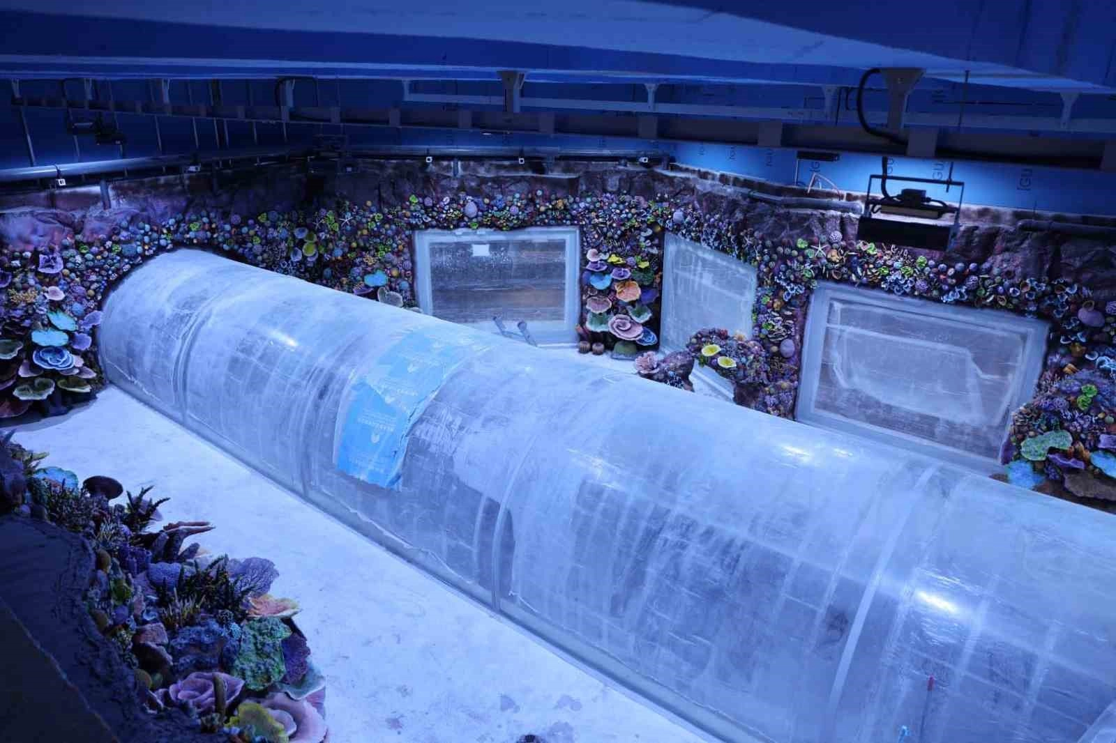 Farklı kıtalara özgü temalarla tasarlanan projede 70’in üzerinde balık ve su altı canlısı çeşidi ziyaretçilerle buluşturulacak. Akvaryumlarda hem balıkların biyolojik döngüsünü başlatmak hem de su kalitesini güvence altına almak amacıyla şebeke suyundan numuneler alınarak geçekleştirilen titiz analizler uzman ekipler tarafından büyük özenle yürütüldü. Hazır durumdaki tanklara kontrollü su dolumunun başlatıldığı çalışmalarda son olarak balıkların transfer aşamasına gelindi.