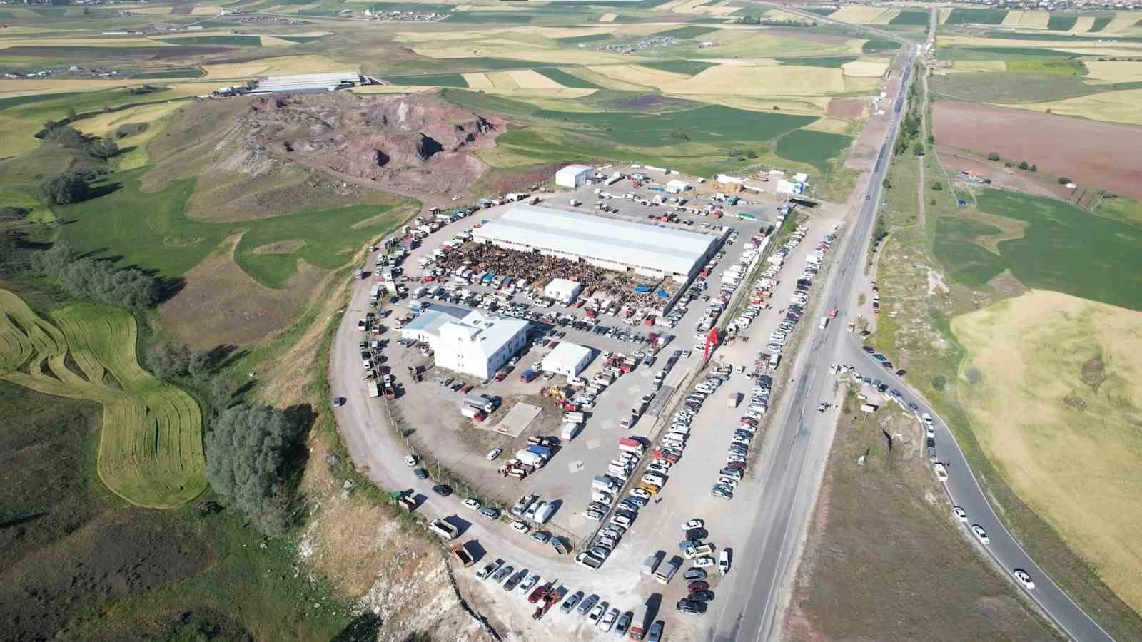 Kurban Bayramı dolayısıyla Ankara’nın Çubuk ilçesinde yer alan Canlı Hayvan Pazarı’ndaki yoğunluk, havadan görüntülendi.