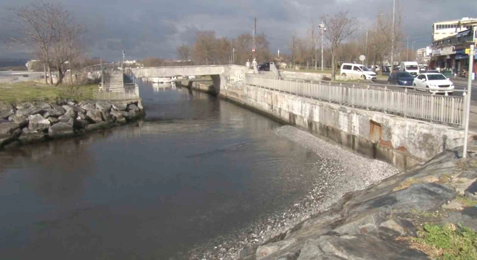 Küçükçekmece Gölü’nün Marmara Denizi’ne bağlanan kısmında Menekşe Deresi çevresinde kuvvetli lodosun etkisiyle biriken kumlar ve suların çekilmesiyle birlikte alçalan su, geçiş yapmaya çalışan teknelere zorluk yaşattı. Suların çekilmesi sonrası ortaya çıkan kum birikintileri ise kameraya yansıdı.