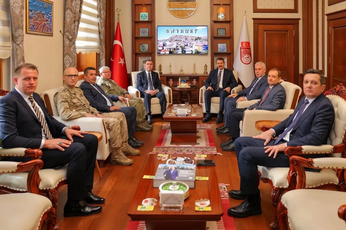 Milli Savunma Bakan Yardımcısı Salih Ayhan, bir dizi ziyaretler için memleketi Bayburt’a geldi. Ayhan, valilik, belediye ve AK Parti İl Başkanlığını ziyaret etti. Bayburt Valisi Mustafa Eldivan ve il protokolü tarafından karşılanan Ayhan, ilk olarak Bayburt Valiliğine geçti. Valilik şeref defterini imzalayan Ayhan, kentte yürütülen çalışmalar hakkında bilgi aldı. Eldivan, ziyaretten duyduğu memnuniyeti dile getirerek, Ayhan’a teşekkür etti. Valilik programının ardından Ayhan, belediyeye ziyarette bulundu. Ziyarette Ayhan’a, Vali Mustafa Eldivan, İl Genel Meclisi Başkanı Hüseyin Şahin eşlik etti. Belediye Başkanı Memiş, Bakan Yardımcısı Ayhan’ı Bayburt’ta ve belediyede ağırlamaktan memnuniyet duyduklarını belirterek, Ayhan’a hediye takdim etti. Ayhan ise Başkan Memiş’e misafirperverliğinden dolayı teşekkürlerini ileterek, çalışmalarında başarılar diledi. Valilik ve belediye ziyaretlerinin ardından Ayhan, AK Parti Bayburt İl Başkanlığına geçti.