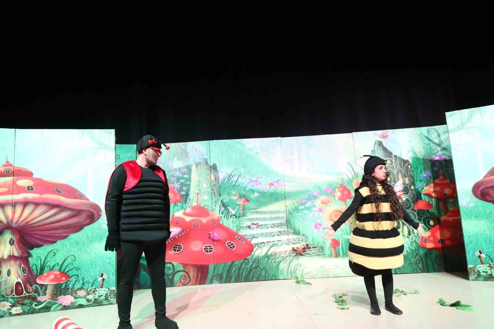 Renkli sahne dekorları ve eğlenceli hikayesiyle "Beneksiz Böcek Uğur" tiyatrosu, minik izleyicilerden tam not aldı.