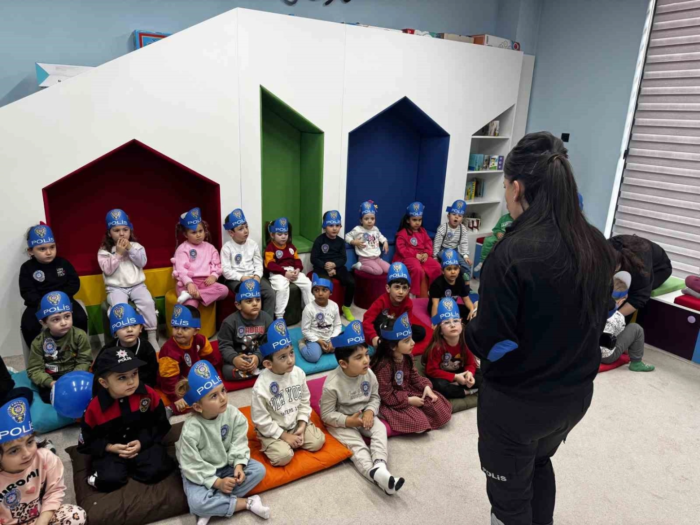 Gerçekleştirilen etkinlikte polis memurları, çocuklara polislik mesleğini eğlenceli ve öğretici yöntemlerle anlattı. Görseller eşliğinde "Polis kimdir?", "Polis ne iş yapar?" gibi sorulara cevap veren ekipler, trafik kuralları, yaya geçitleri ve günlük hayatta dikkat edilmesi gereken temel güvenlik konularında da bilgilendirme yaptı.